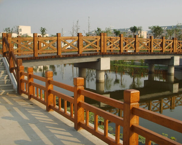 景觀木結(jié)構(gòu)橋梁的跨度或風格的變化在許多方面決定了其基礎設施框架。鋼筋混凝土梁、鋼架梁等結(jié)構(gòu)一般應在大型橋體上存在,而木梁可直接作為干橋和小木橋的主要支撐結(jié)構(gòu)。干橋和小木橋可能是單扶手或無扶手。扶手柱直接固定在基于木梁的干橋或小木橋上。